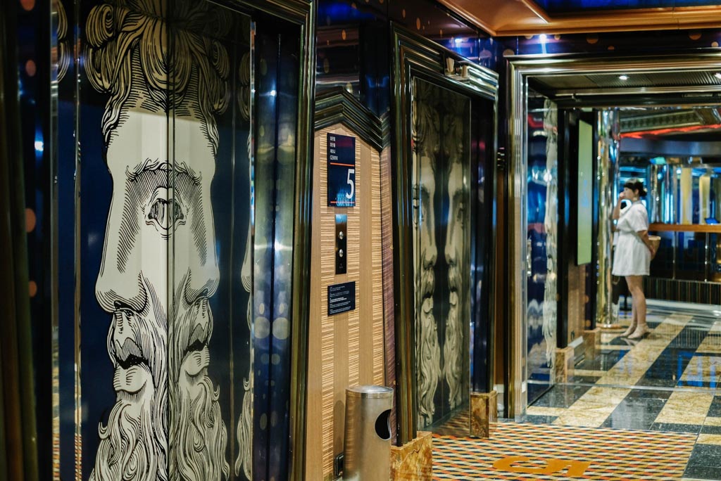 自2003年7月起將以基隆為母港營運23航次的 Costa Serena #歌詩達莎倫娜號,以羅馬萬神殿為設計靈感,熱情洋溢的風格很義大利,牆面上各種華麗和古神話的藝術裝飾,電梯門上的宙斯臉孔緩緩開啟,像是歡迎大家來到眾神的國度。