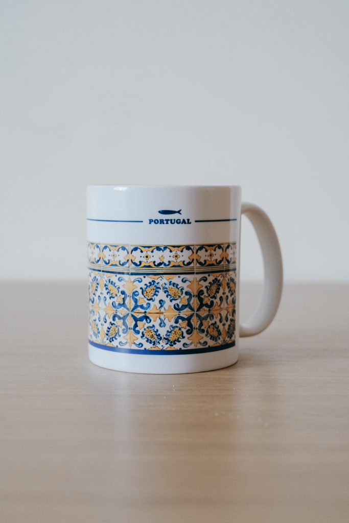 因為日前地震摔破了在女賊市集挖到的花磚馬克杯,所以決定自己復刻一個以茲紀念!選了很喜歡的藍、黃配色,再加上了小沙丁魚和 Lisboa & Portual 字樣,彷彿像在里斯本紀念品店買到的一樣!😍