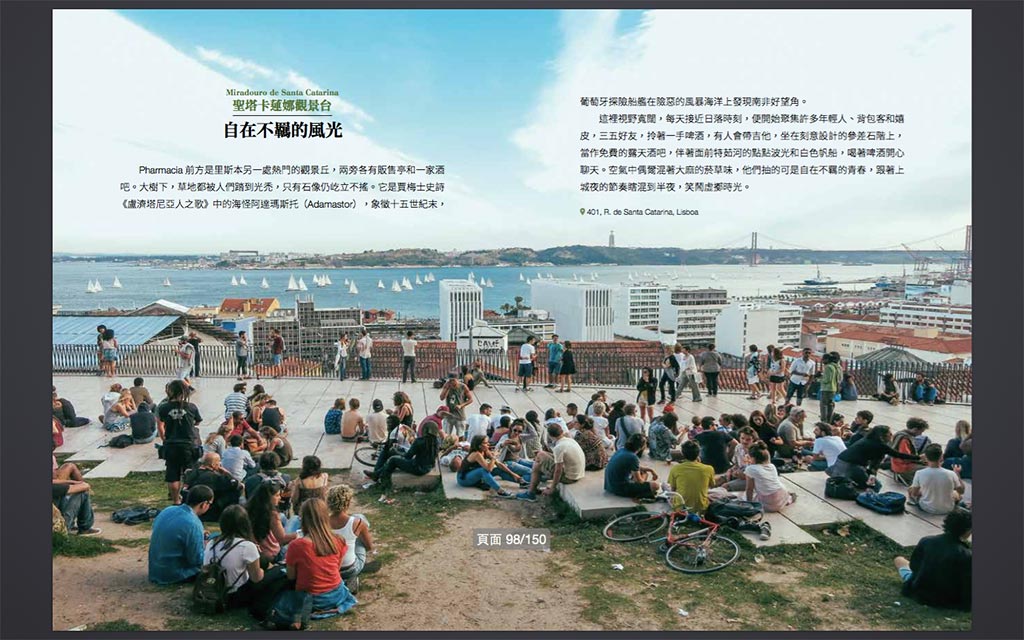 里斯本有股莫名的自在和吸引力,讓我連續三年到這居遊,寫書的當下,對她仍是念念不忘。其實,葡萄牙的瞬間爆紅,讓里斯本也開始走向商業和觀光化,張臂將所有人擁抱入懷。特茹河每天都有巨大遊輪停靠,遊客明顯多了好幾倍,市區開始出現花俏的餐廳和沙丁魚罐頭店,市集、展覽、演唱會等大型商業活動也變多了。里斯本的老靈魂正在逐漸轉換,有可惜之處,但也更豐富多元,這對於許多竄起的舊城市來說,總是個顧此失彼的兩難抉擇。
