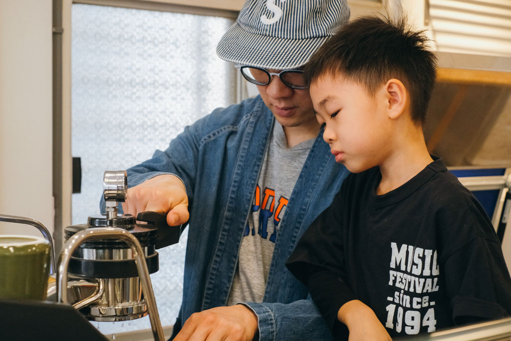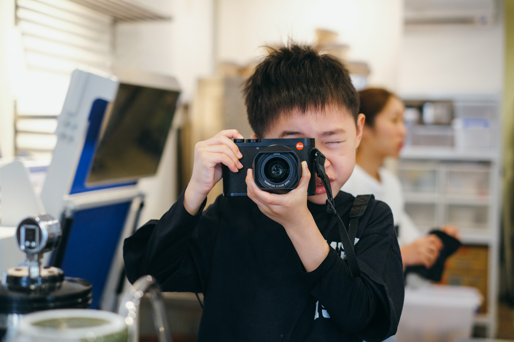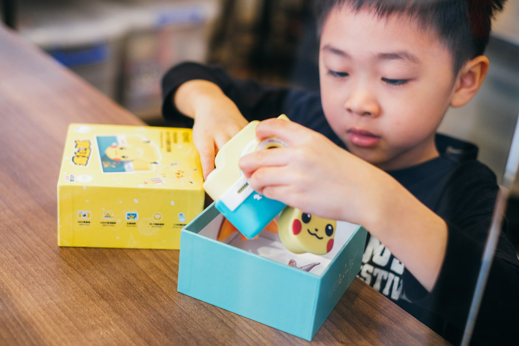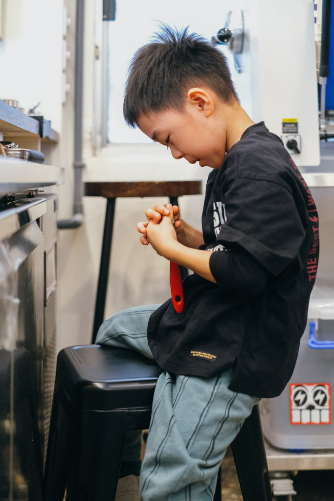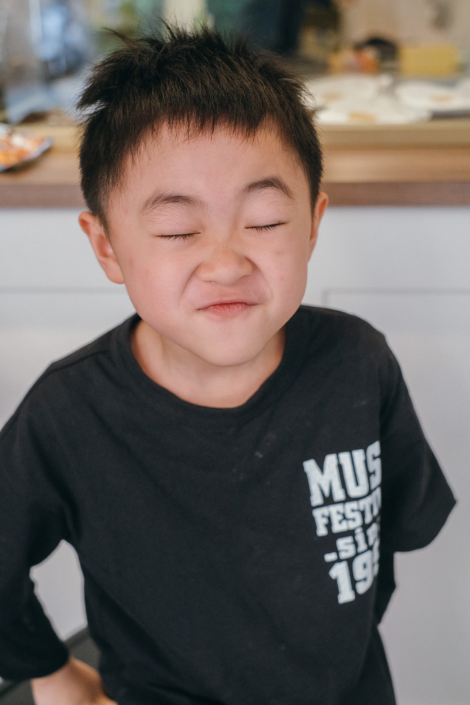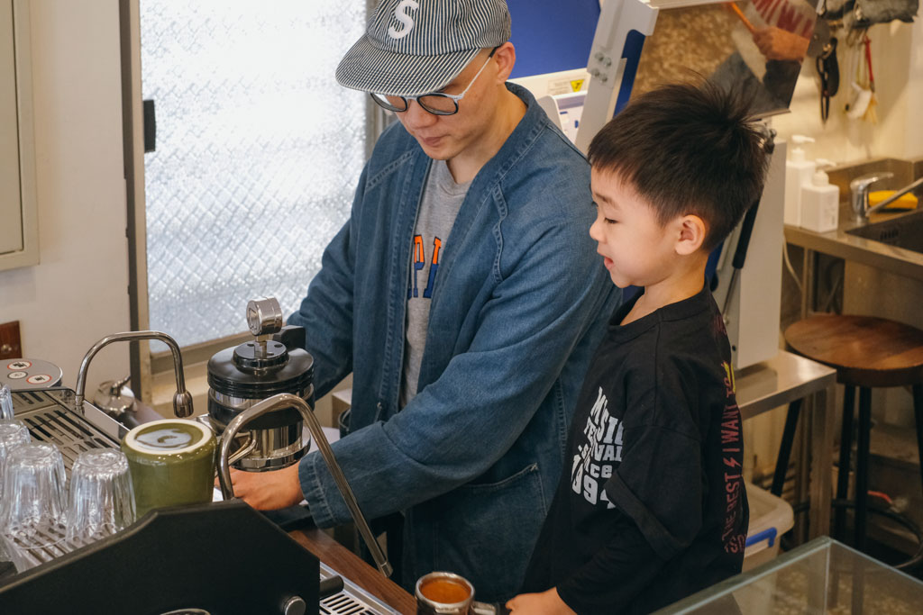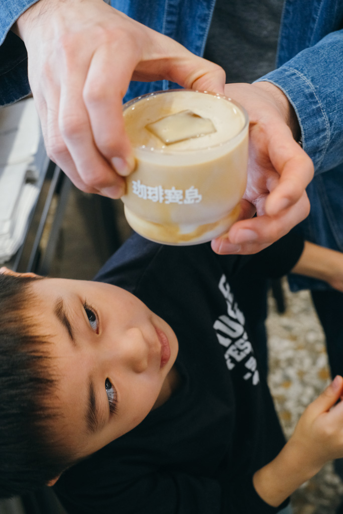 過程中,大鵝子先是跟我現他的皮卡丘相機,然後用爸爸的徠卡和我互拍。後來因為店裡肉桂捲全都是要出貨的沒得吃而鬧脾氣,表情嚴肅的Jerry(疑似)耐著性子對他曉以大義,而身為局外人,最喜歡拍下這種好有生活感的僵局。
