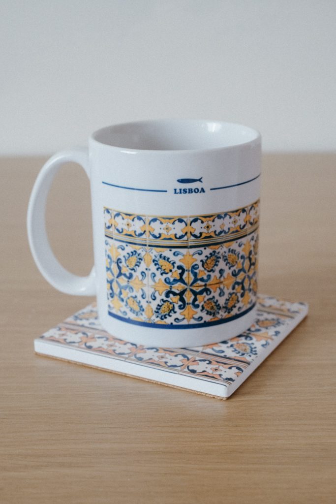 因為日前地震摔破了在女賊市集挖到的花磚馬克杯,所以決定自己復刻一個以茲紀念!選了很喜歡的藍、黃配色,再加上了小沙丁魚和 Lisboa & Portual 字樣,彷彿像在里斯本紀念品店買到的一樣!😍